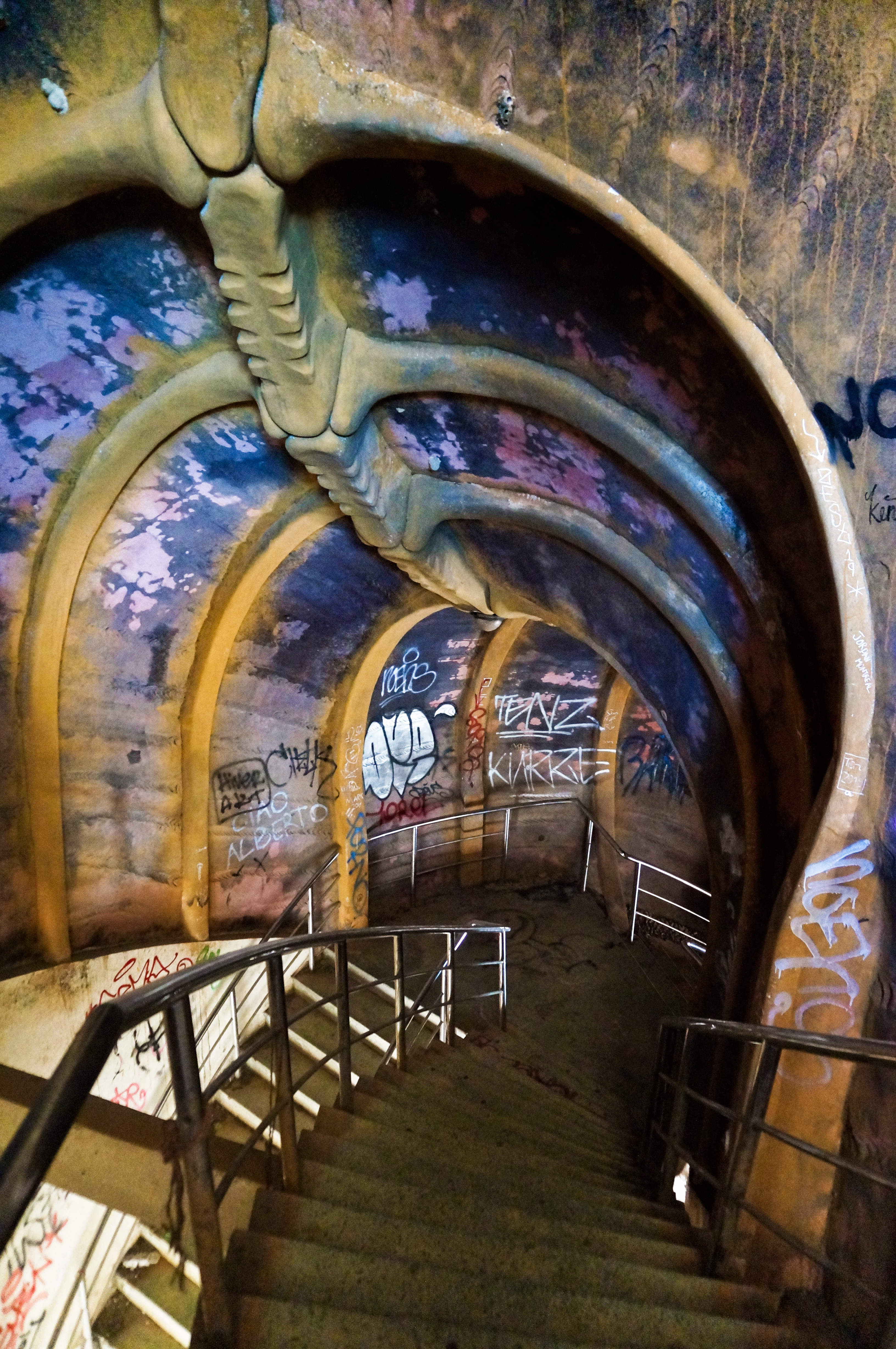 Inside the dragon are the remains of a massive aquarium, which once housed not only fish but sharks, manta rays, and even crocodiles. Apparently the crocodiles were released into the park when it shut, and have only recently been removed by a wildlife protection agency. All that is left inside are the remnants of smashed tanks, collapsing ceilings, ladders into the aforementioned shark slash gator tanks, and lots and lots of broken glass. I don’t know what happened to the other creatures, but probably it wasn’t good 🙁